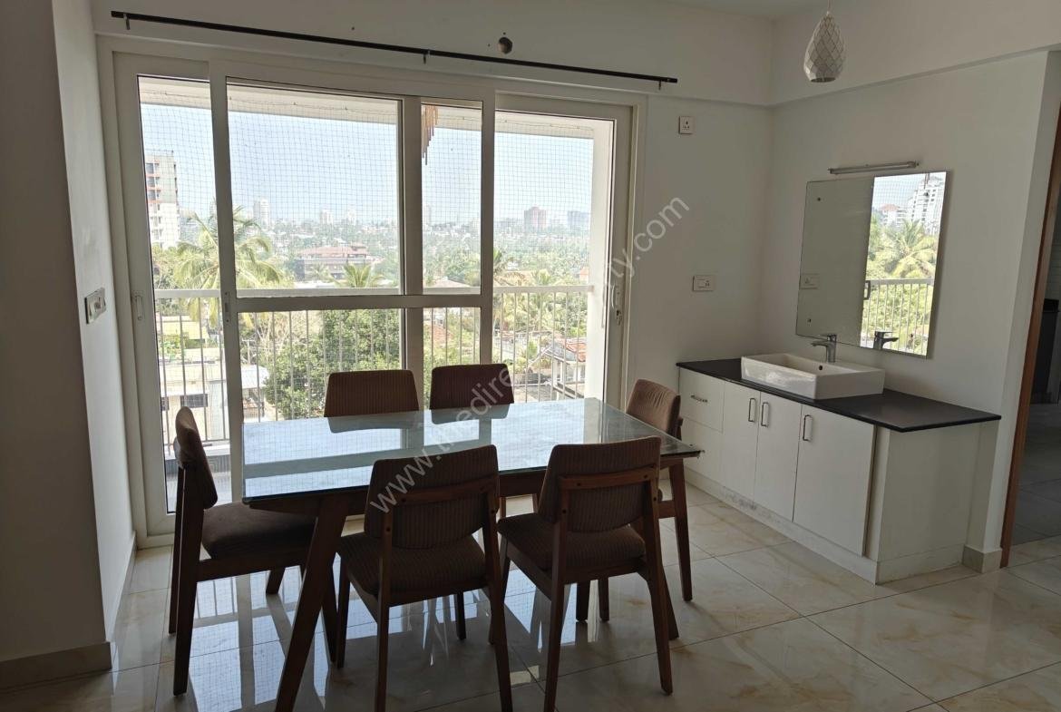 It is a 3 BHK apartment for sale in Trivandrum in a building comprising of basement, ground plus 9 floors and a terrace. This flat is on 6th Floor. It is a recently completed construction in mid 2022 and located in a quiet street off the main road (200 m) having recreational facility on the top floor.