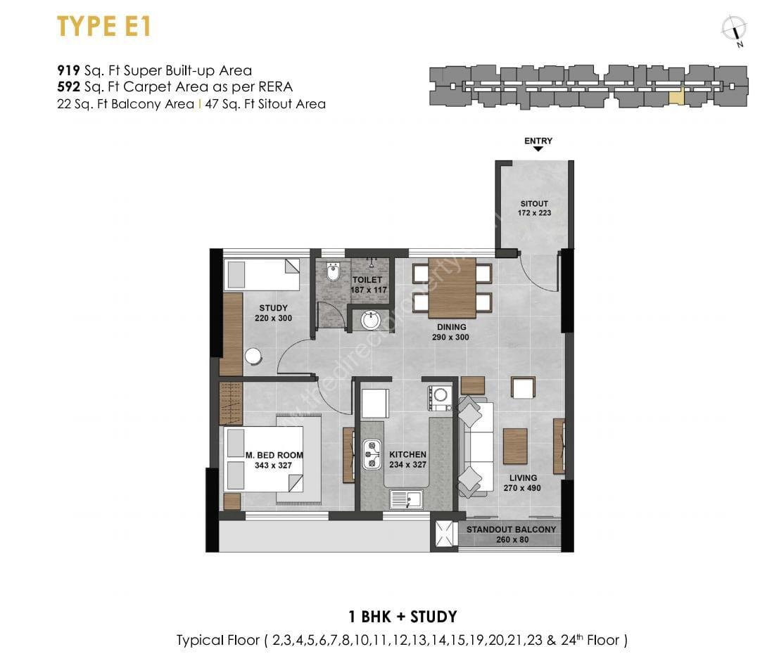 1BHK+1 STUDY