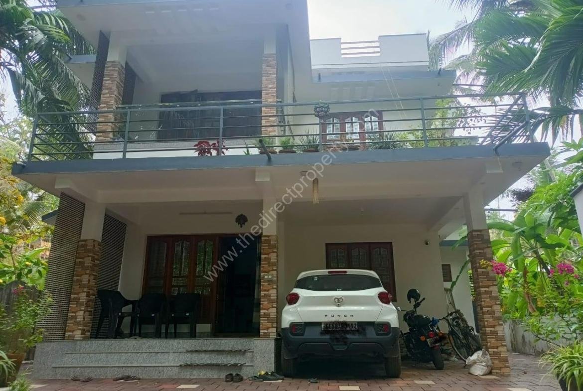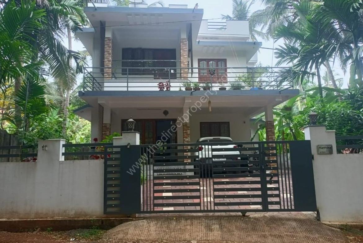 7 1/2 cents land measuring 2142 sq ft and two storey house for sale near Kolassery, Thalassery. New Mahe Bypass is 200 meters away. Four bedrooms. 5 bathrooms and well. 4 year old.
